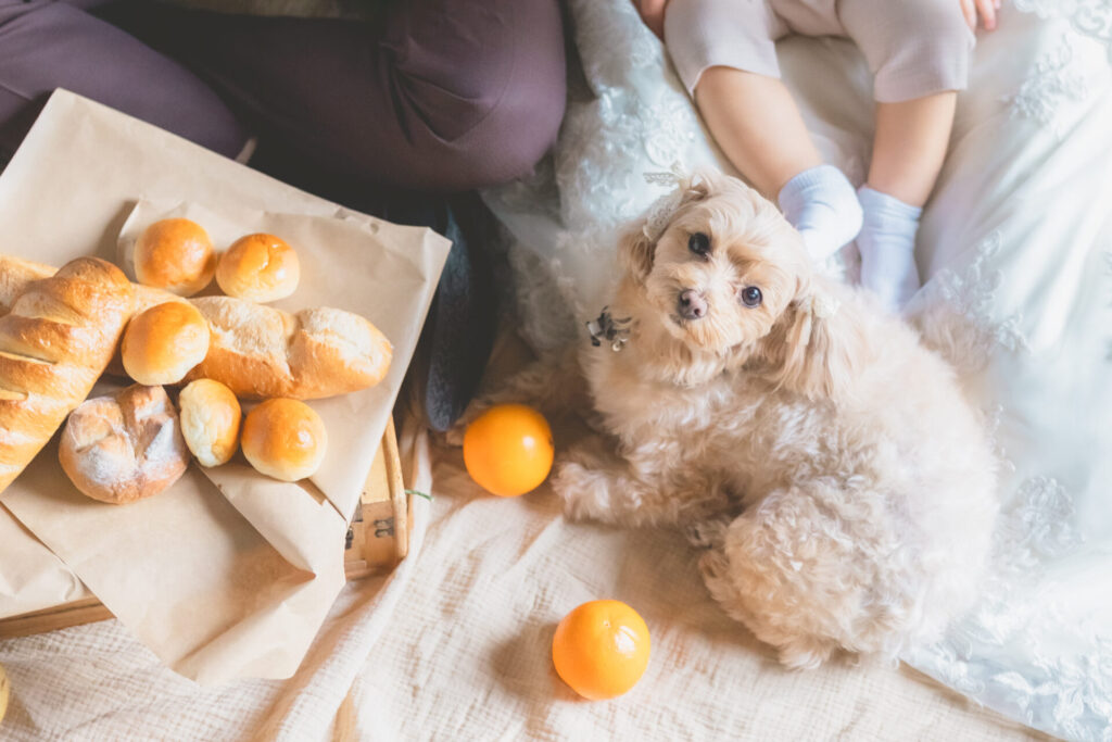 ペットと一緒での撮影ですが、